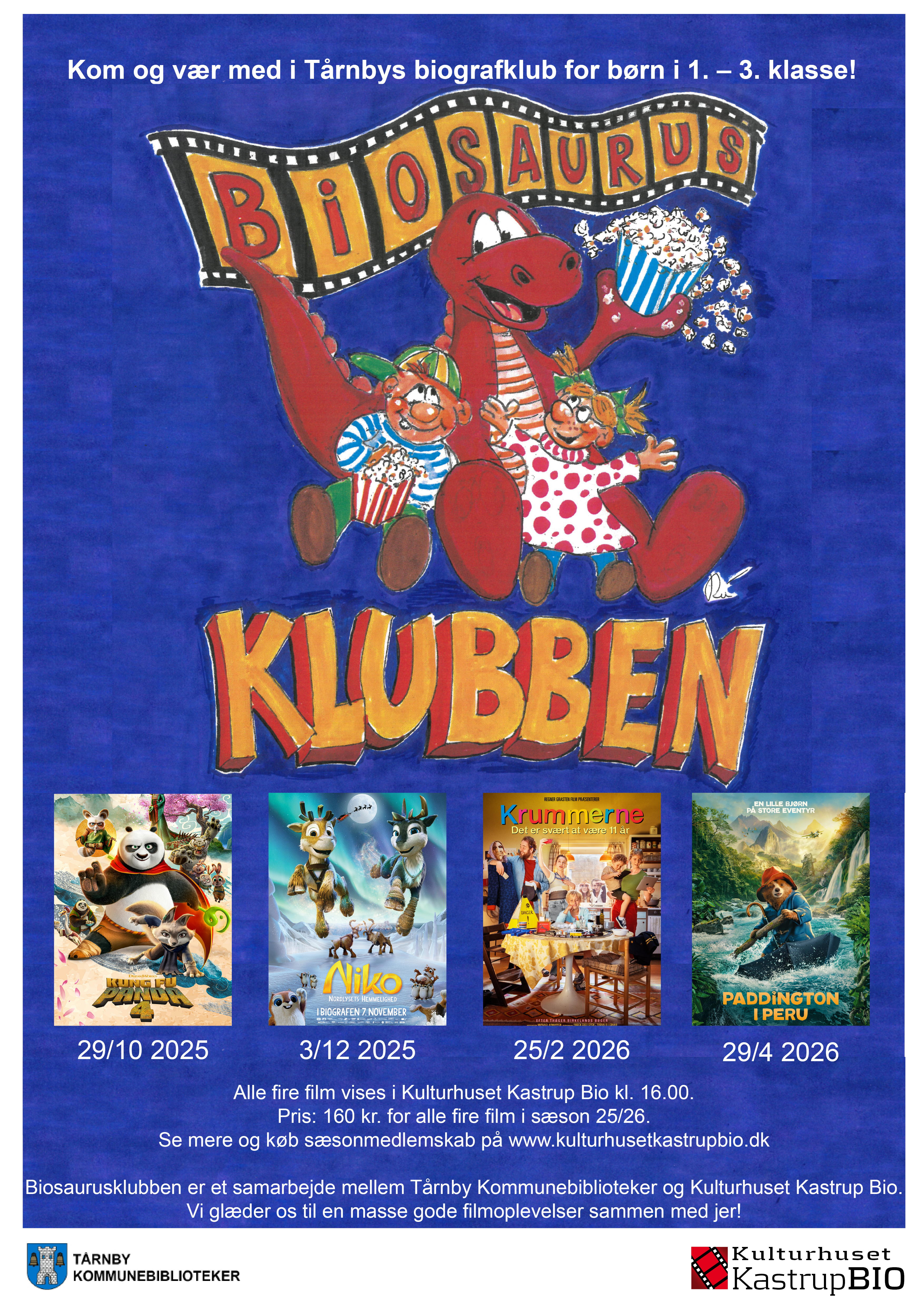 Biosaurusklubben er et samarbejde mellem Tårnby Kommunebiblioteker og Kulturhuset Kastrup Bio.